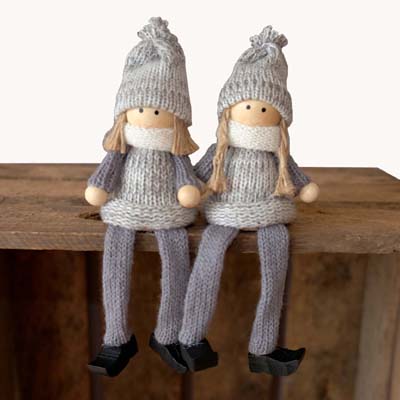 2er Set Kantenhocker"Wichtel", grau, Sitzhöhe ca. 12 cm