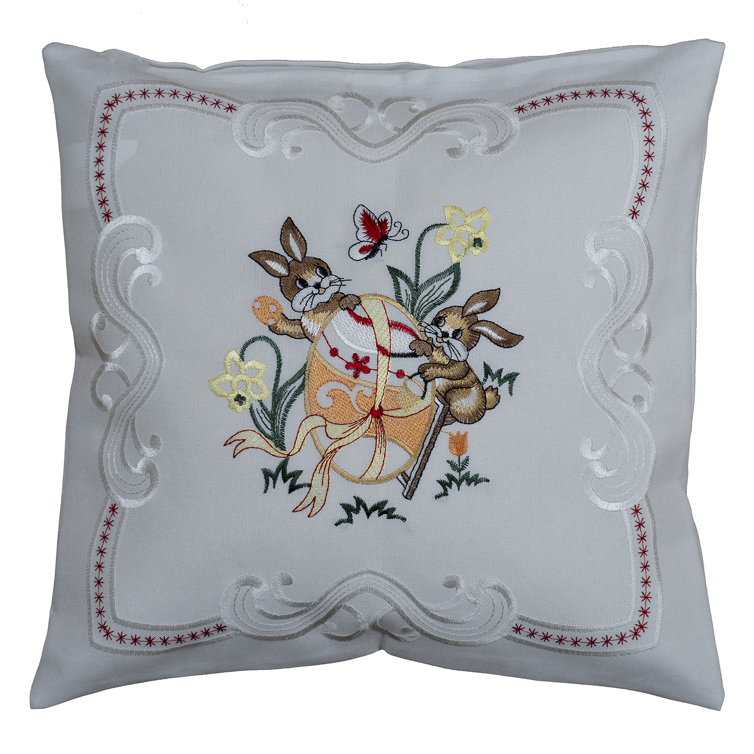 40/40 KH, Stickerei "Hasenkinder mit Osterei", (SP)