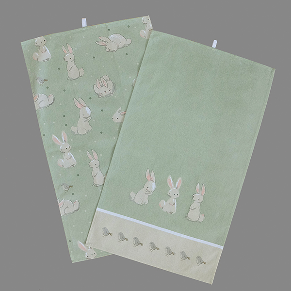 40/70 Geschirrtücher "Osterhäschen", grün-grau, 2er Pack