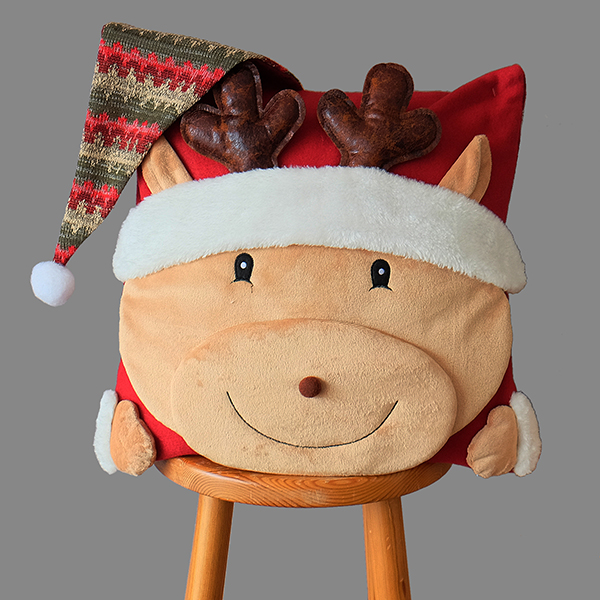 40/40 KH "applizierter Elch mit Mütze", rot/bunt